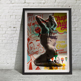 The strong and powerful curves of the female form are flanked by the advertising of this confectionary icon.  A tongue-in-cheek look at misogynistic thinking, turned on its head with this playful 'Mad Men' era branding. Hang it individually as a statement piece or with other Art Prints in this series.
